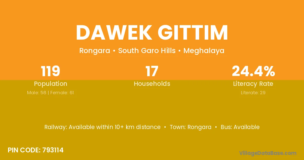 According to Census 2011 information, the village code of Dawek Gittim village is 793114.