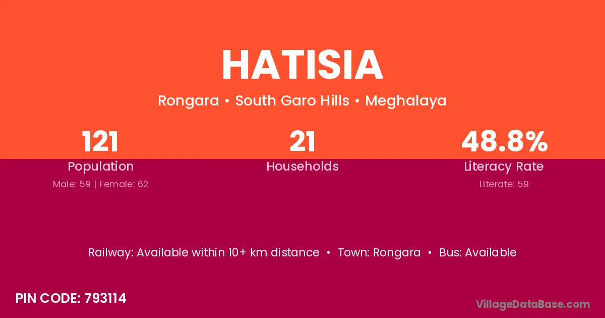 According to Census 2011 information, the village code of Hatisia village is 793114.