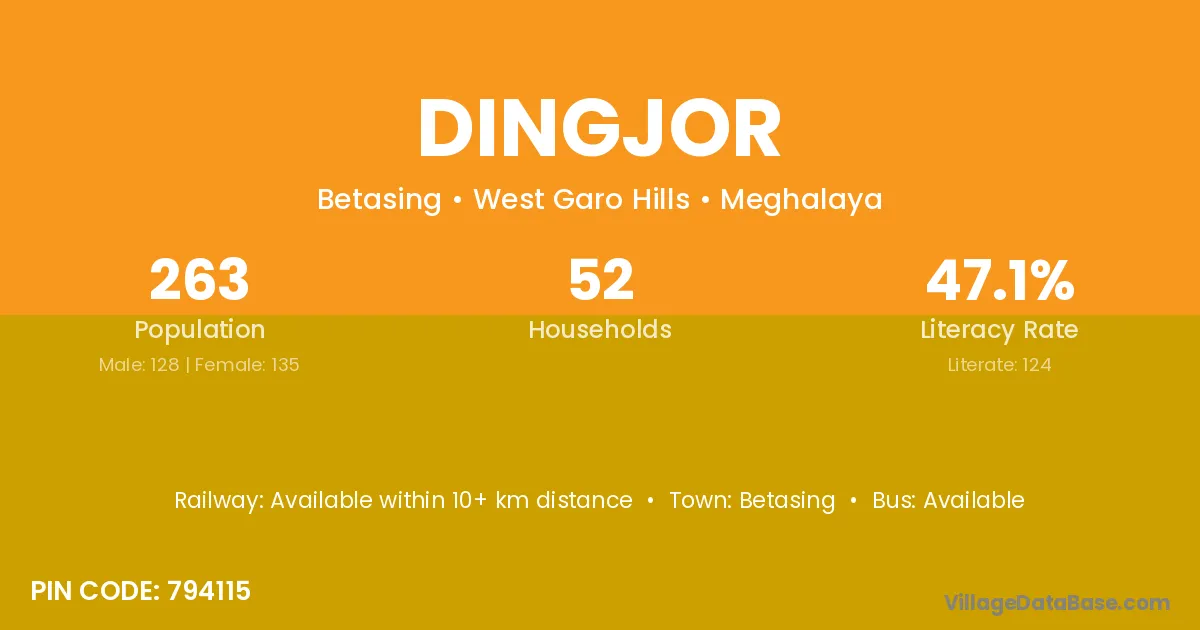 Dingjor village has a total population of 263 people, of which 128 are males and 135 are females.