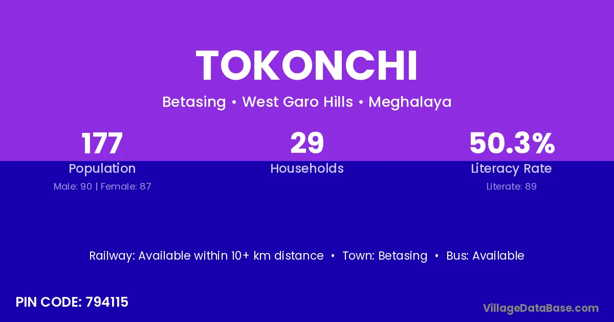 According to Census 2011 information, the village code of Tokonchi village is 794115.