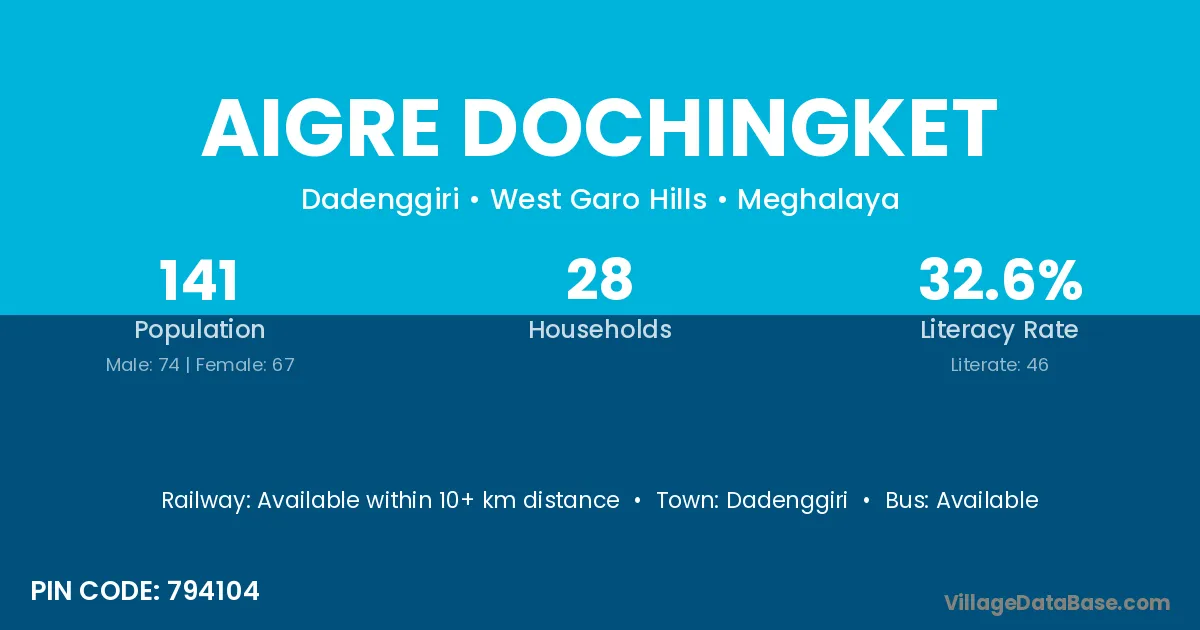 Aigre Dochingket village has a total population of 141 people, of which 74 are males and 67 are females.