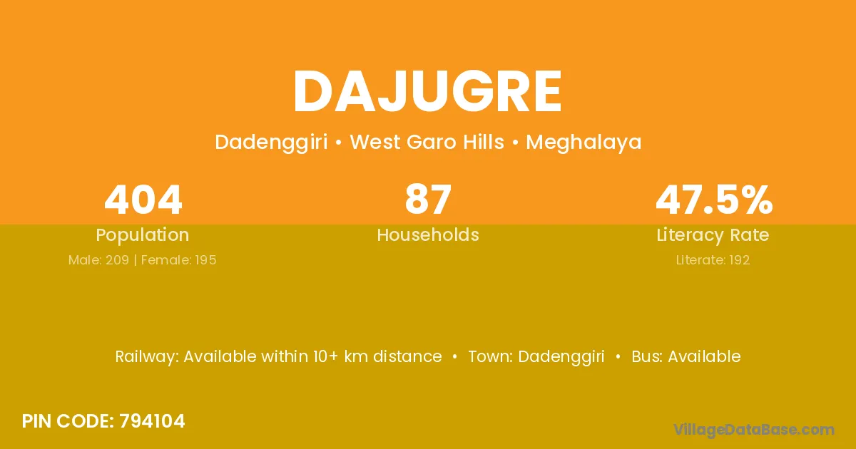Dadenggiri is the nearest town to Dajugre village for major economic activities