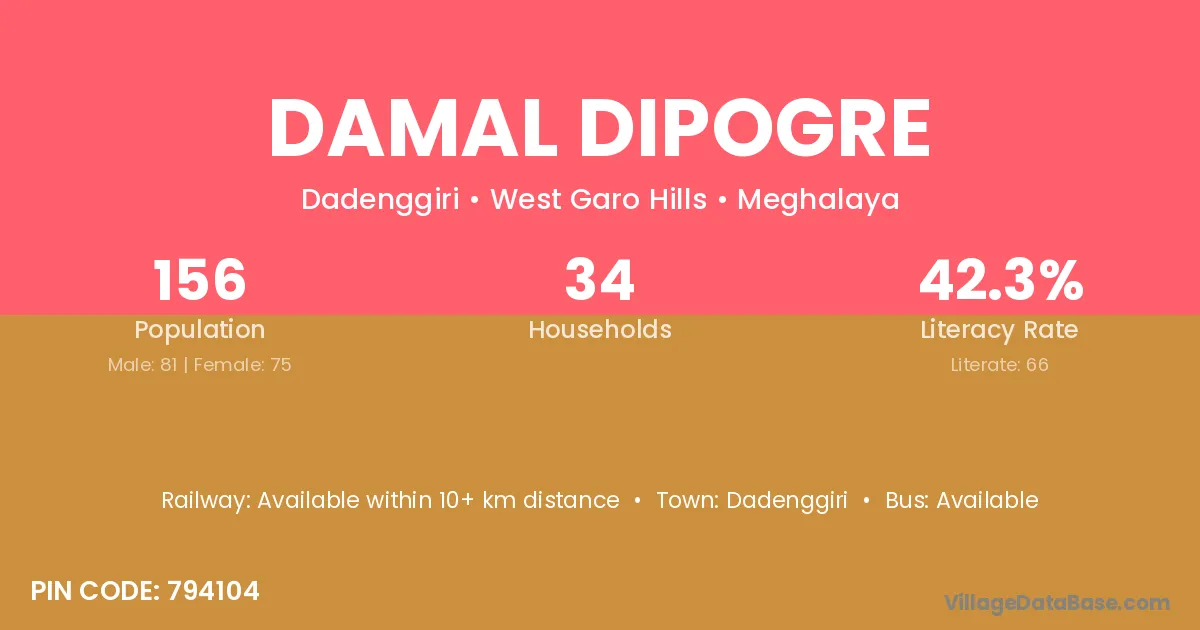Damal Dipogre village has a total population of 156 people, of which 81 are males and 75 are females.