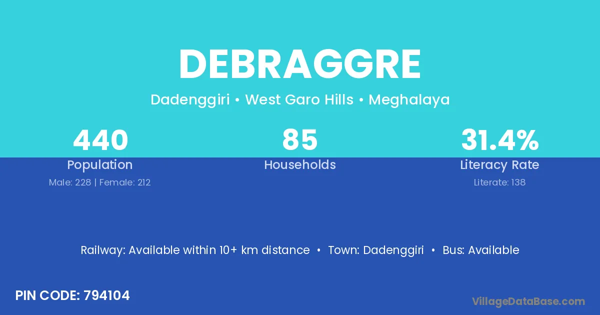 Debraggre village has a total population of 440 people, of which 228 are males and 212 are females.