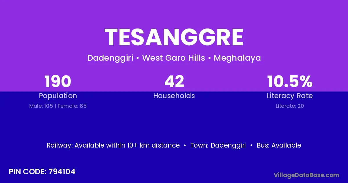 Tesanggre village is located in the Dadenggiri Subdivision of the West Garo Hills district in Meghalaya .