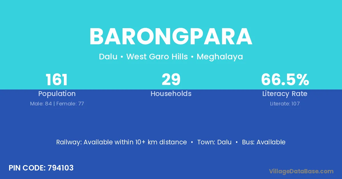 Dalu is the nearest town to Barongpara village for major economic activities