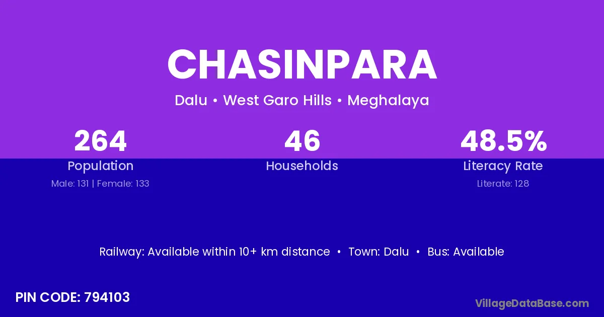 Dalu is the nearest town to Chasinpara village for major economic activities
