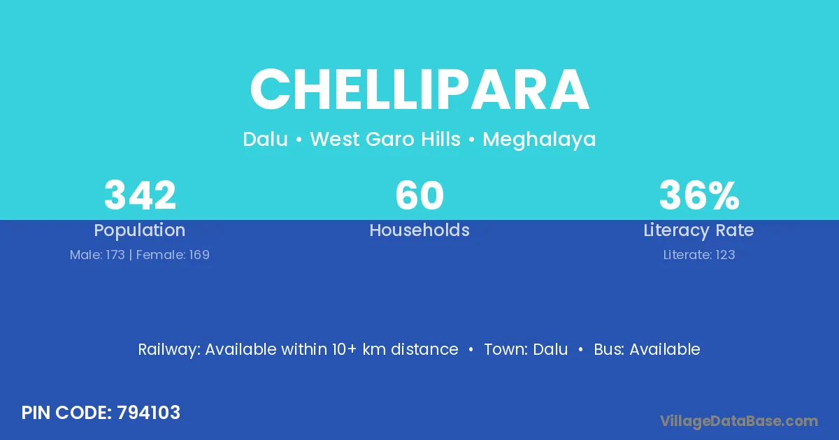 Chellipara village has a total population of 342 people, of which 173 are males and 169 are females.