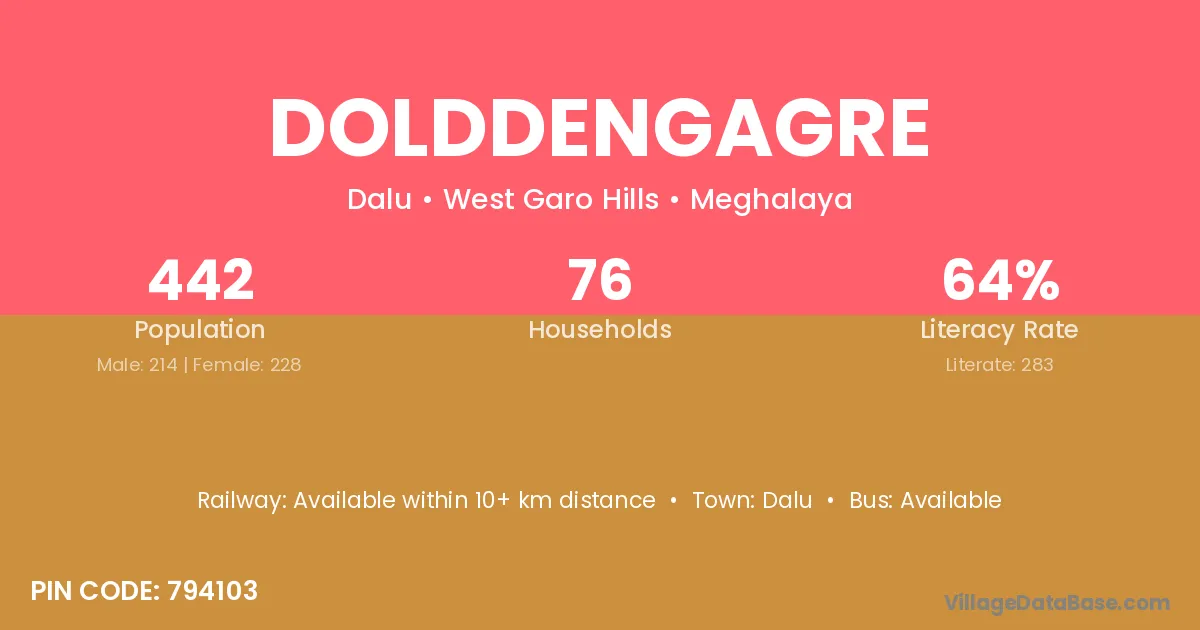 Dolddengagre village has a total population of 442 people, of which 214 are males and 228 are females.