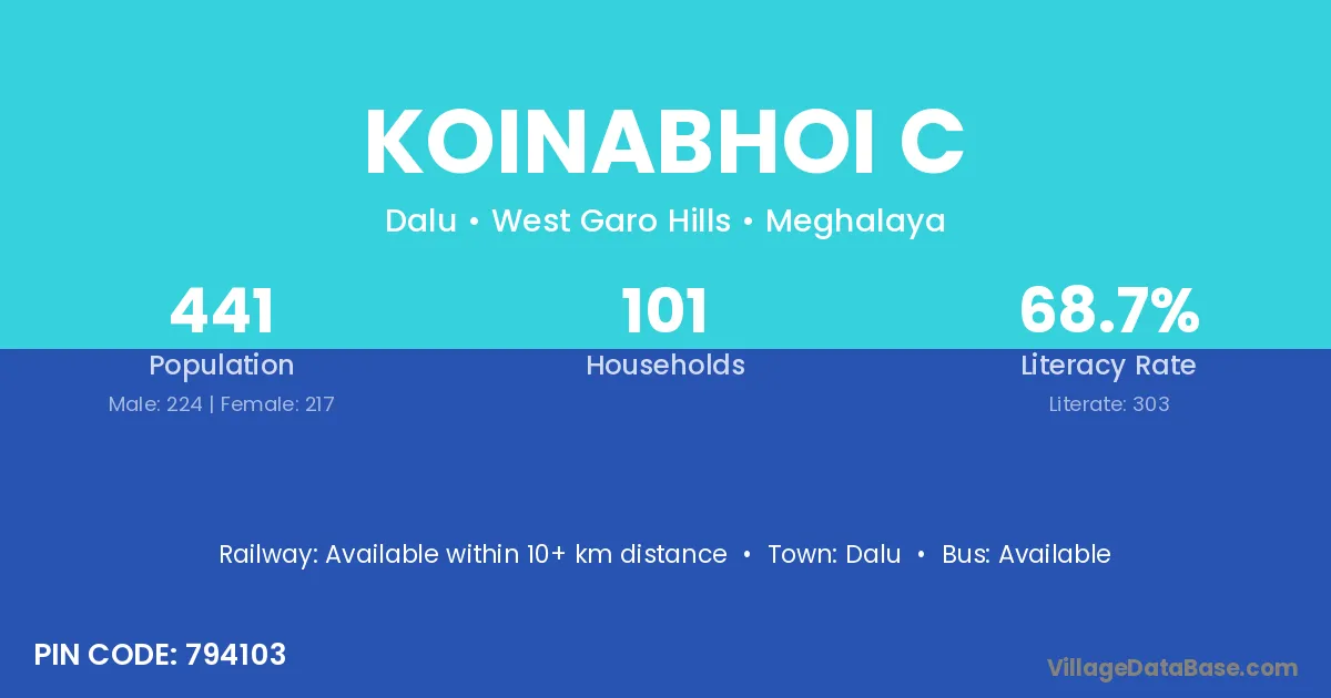 Koinabhoi C village has a total population of 441 people, of which 224 are males and 217 are females.