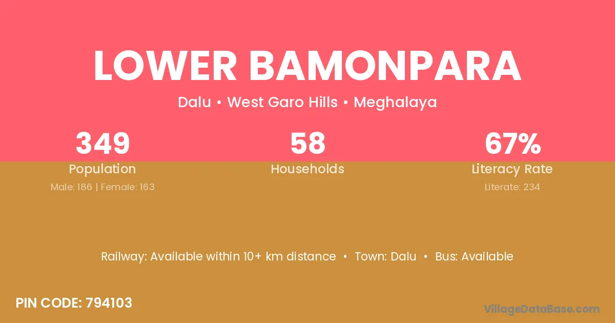 Dalu is the nearest town to Lower Bamonpara village for major economic activities