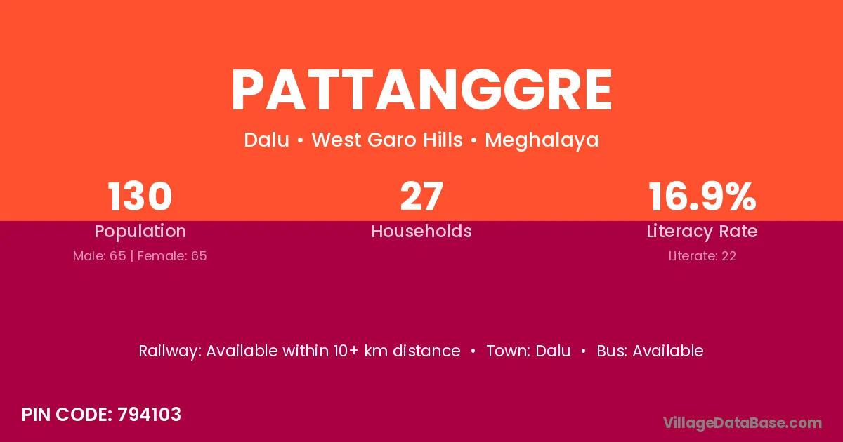 Pattanggre village has a total population of 130 people, of which 65 are males and 65 are females.