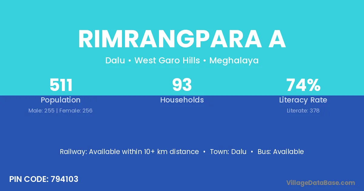 Rimrangpara A village has a total population of 511 people, of which 255 are males and 256 are females.