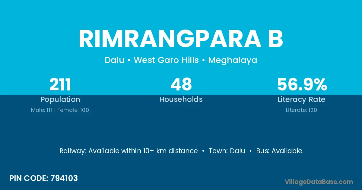 Dalu is the nearest town to Rimrangpara B village for major economic activities