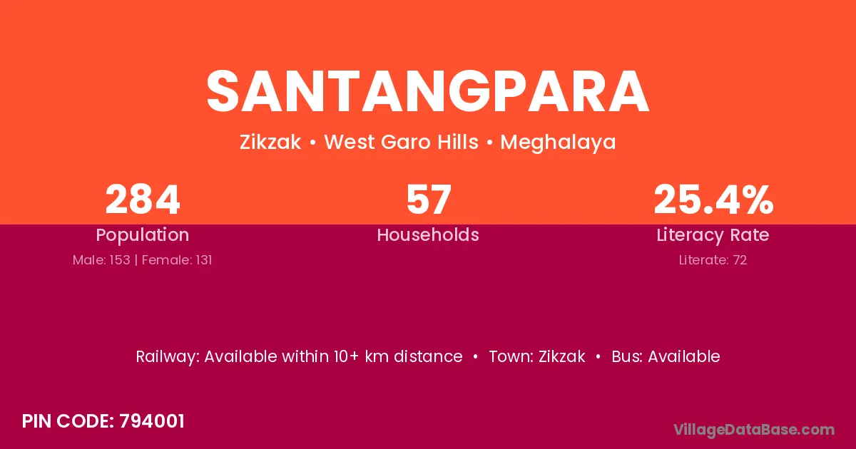 The population of Santangpara village is distributed between literate and illiterate residents as follows: