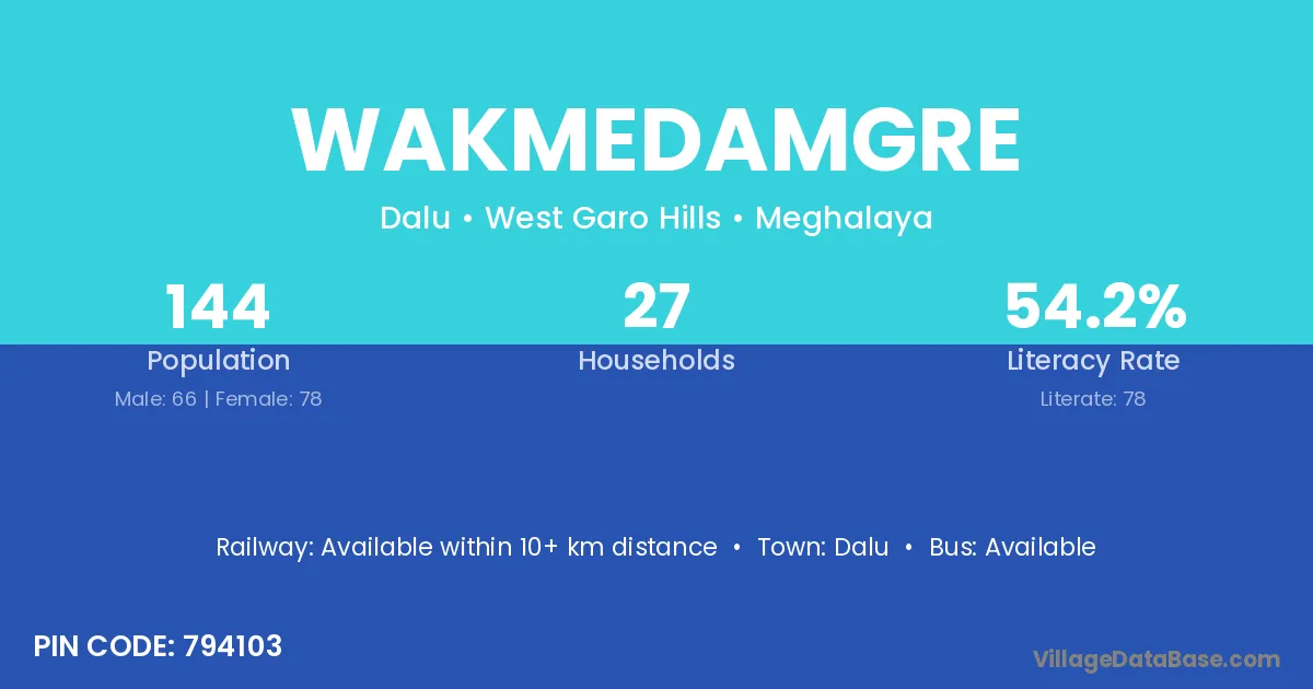 Wakmedamgre village has a total population of 144 people, of which 66 are males and 78 are females.