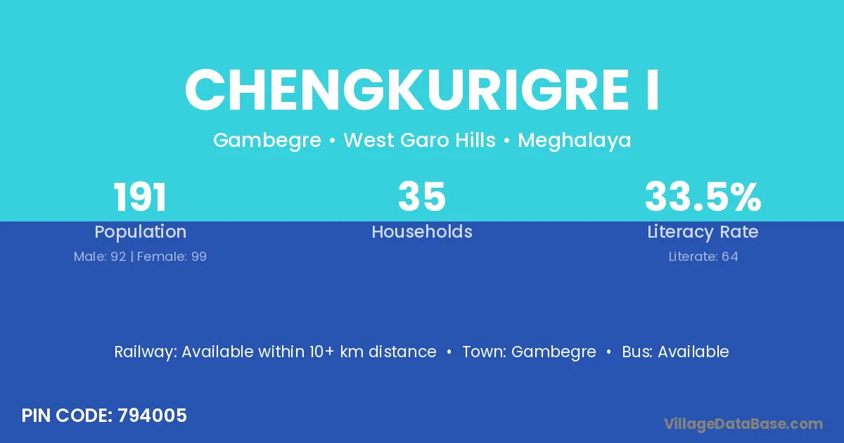 Chengkurigre I village has a total population of 191 people, of which 92 are males and 99 are females.