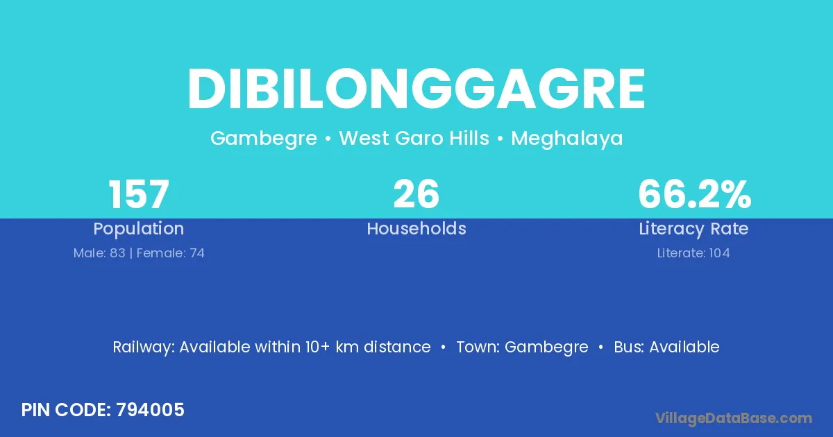 Dibilonggagre village has a total population of 157 people, of which 83 are males and 74 are females.