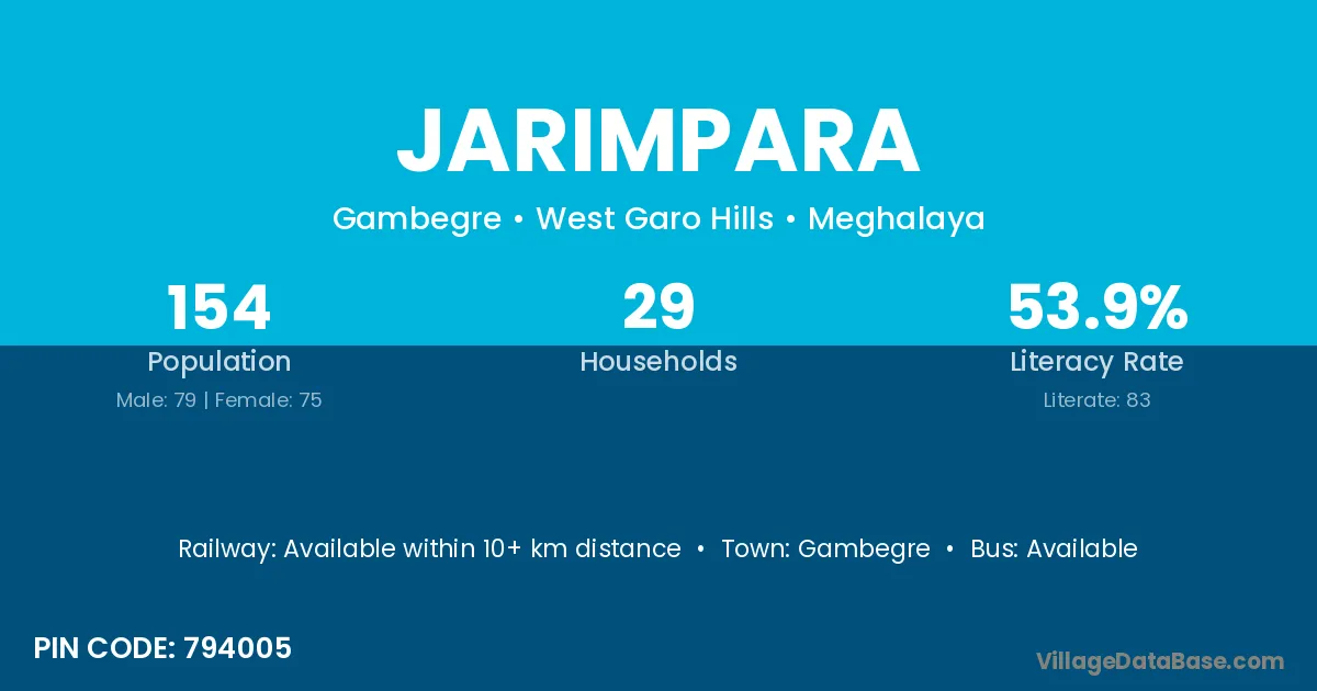 Jarimpara village has a total population of 154 people, of which 79 are males and 75 are females.