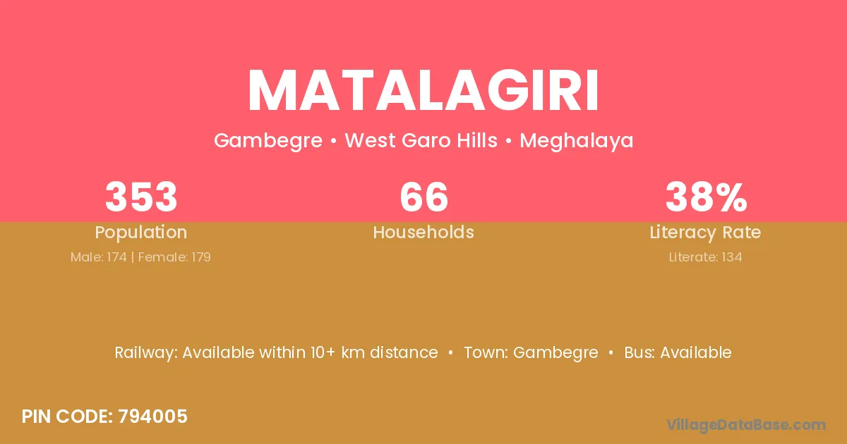 Matalagiri village has a total population of 353 people, of which 174 are males and 179 are females.