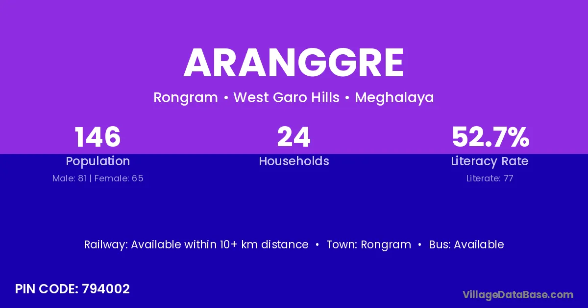 Aranggre village has a total population of 146 people, of which 81 are males and 65 are females.