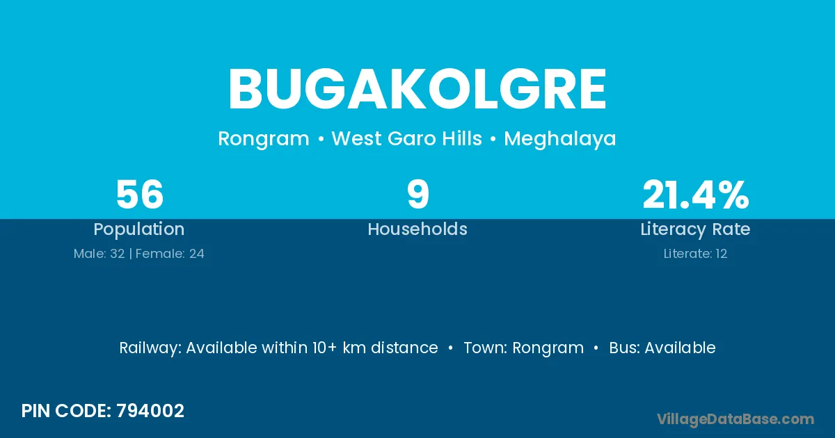 Rongram is the nearest town to Bugakolgre village for major economic activities