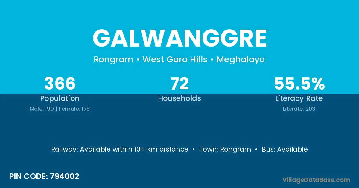 Galwanggre village has a total population of 366 people, of which 190 are males and 176 are females.
