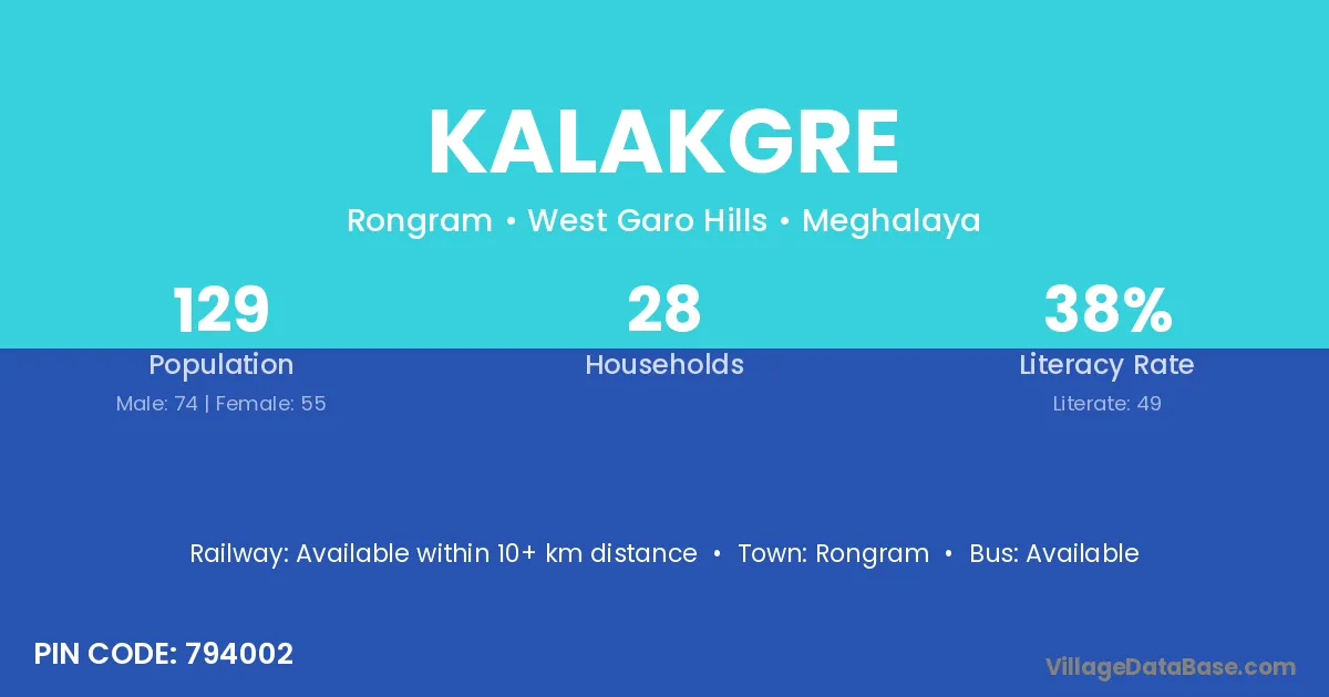 Rongram is the nearest town to Kalakgre village for major economic activities
