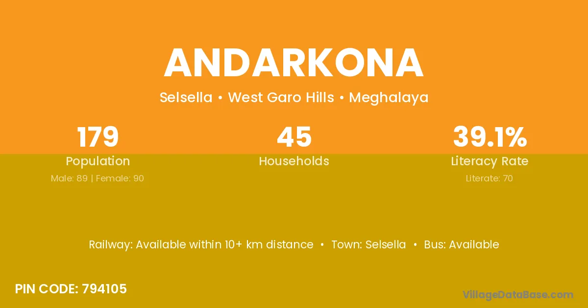 Andarkona village is located in the Selsella Subdivision of the West Garo Hills district in Meghalaya .