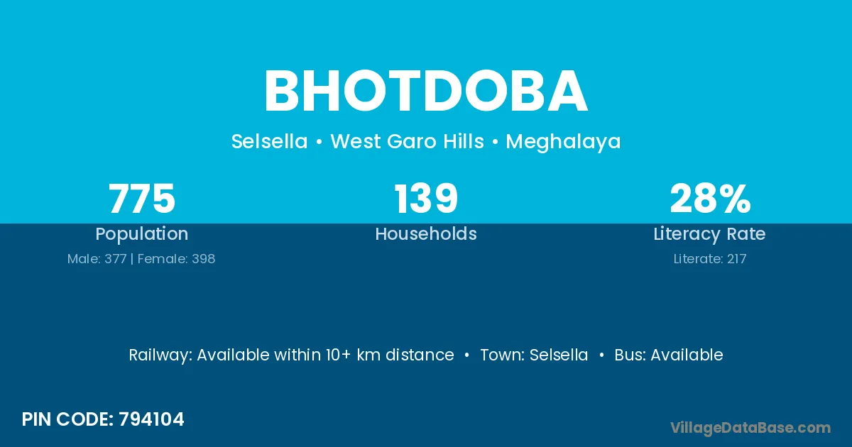 According to Census 2011 information, the village code of Bhotdoba village is 794104.