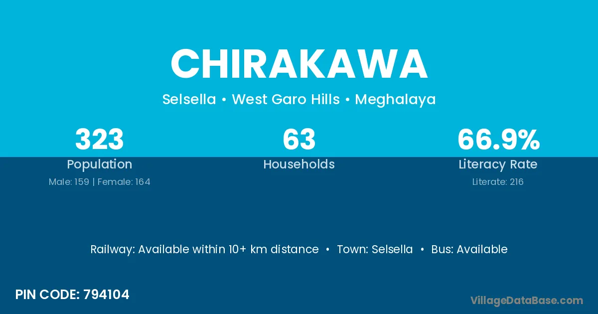 According to Census 2011 information, the village code of Chirakawa village is 794104.