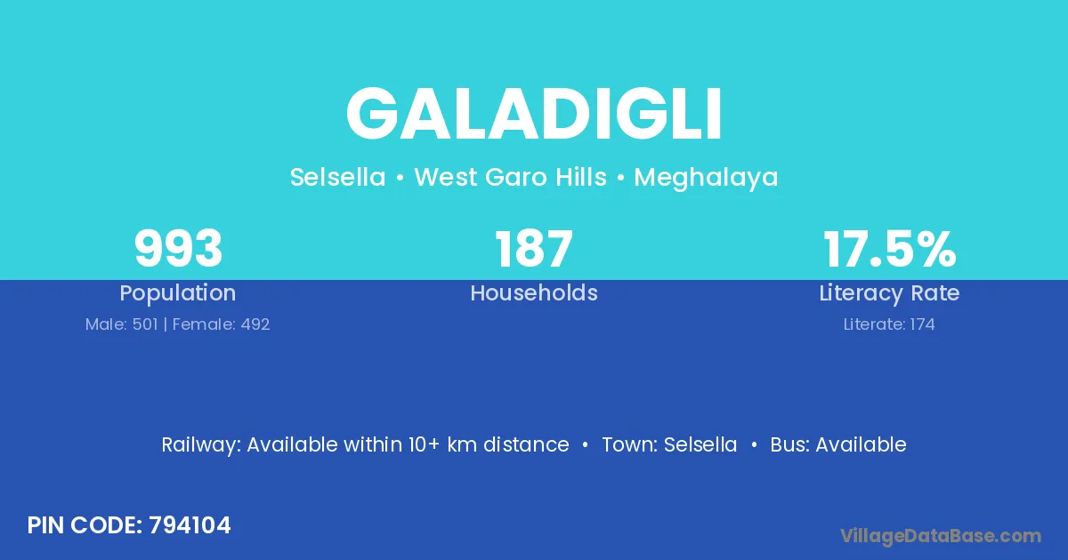 Galadigli village has a total population of 993 people, of which 501 are males and 492 are females.