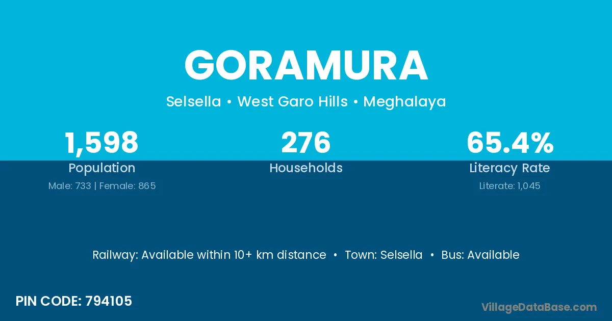 Goramura village has a total population of 1,598 people, of which 733 are males and 865 are females.