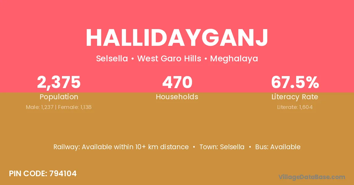 According to Census 2011 information, the village code of Hallidayganj village is 794104.
