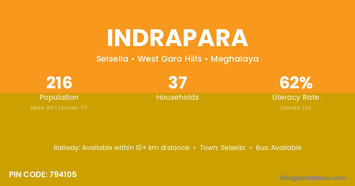 According to Census 2011 information, the village code of Indrapara village is 794105.
