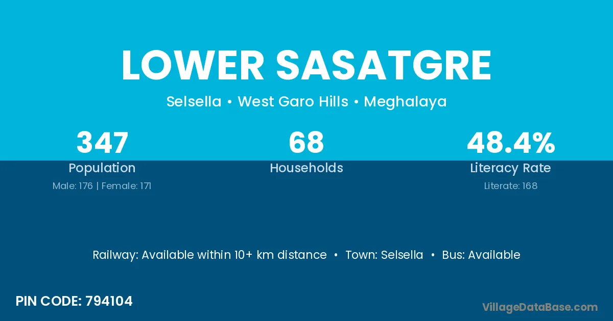 Lower Sasatgre village has a total population of 347 people, of which 176 are males and 171 are females.