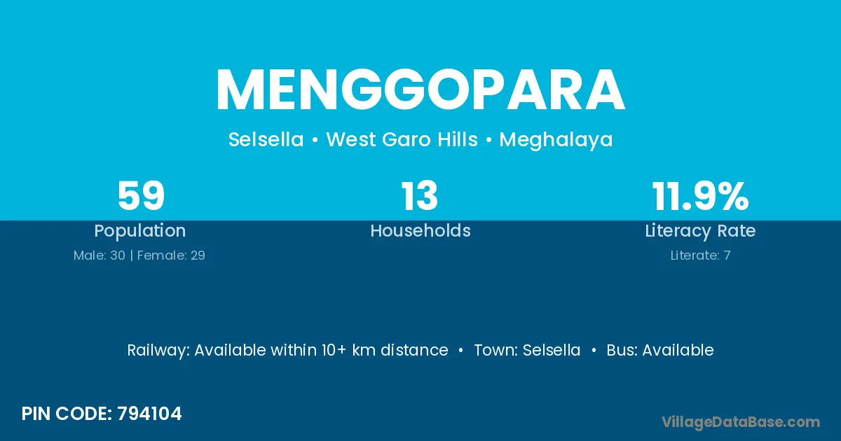 Menggopara village has a total population of 59 people, of which 30 are males and 29 are females.