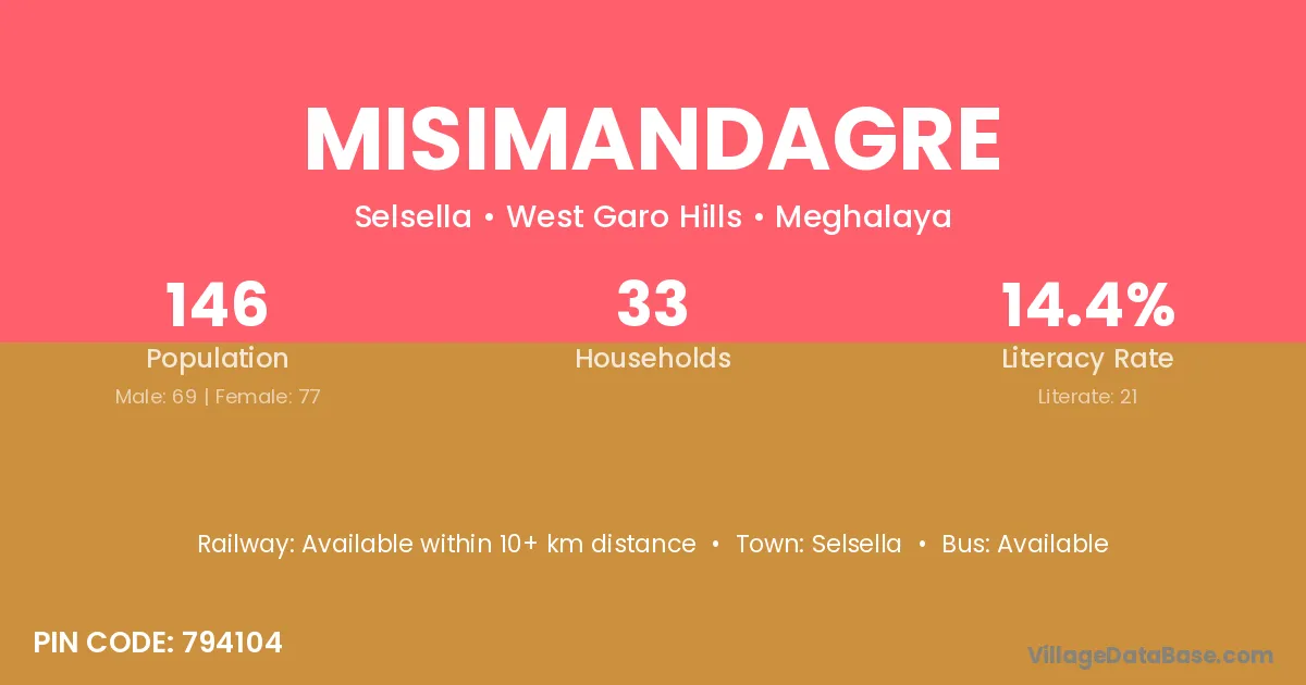Misimandagre village has a total population of 146 people, of which 69 are males and 77 are females.