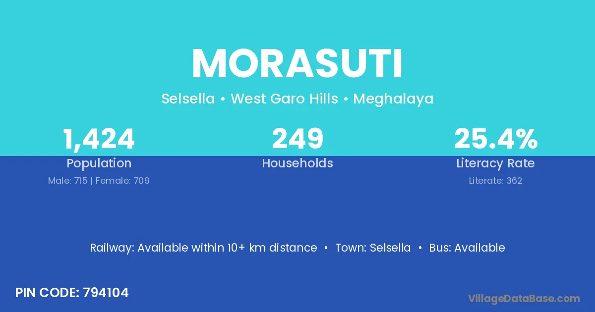 Morasuti village has a total population of 1,424 people, of which 715 are males and 709 are females.
