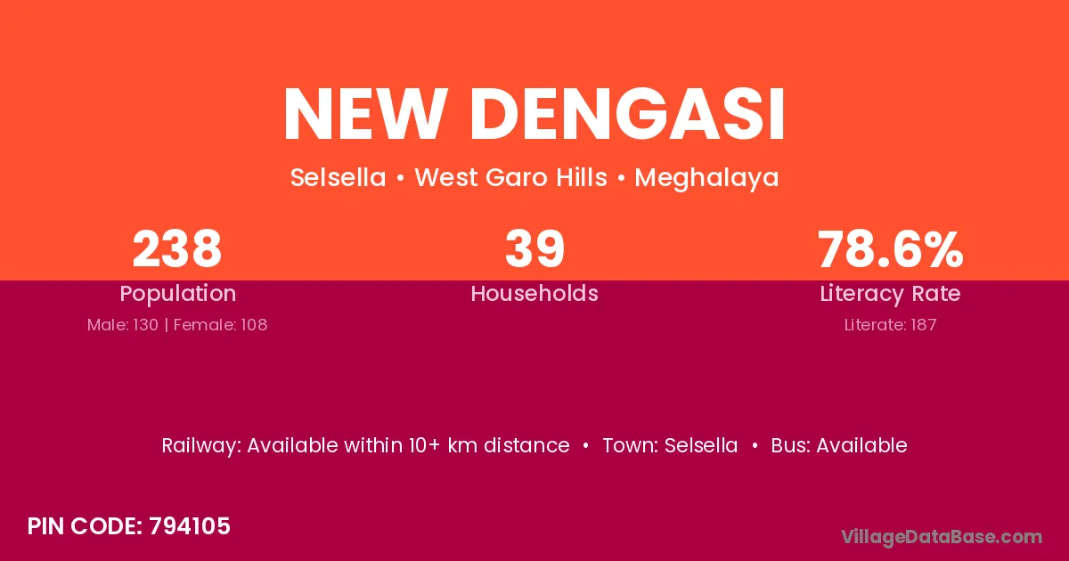 New Dengasi village has a total population of 238 people, of which 130 are males and 108 are females.
