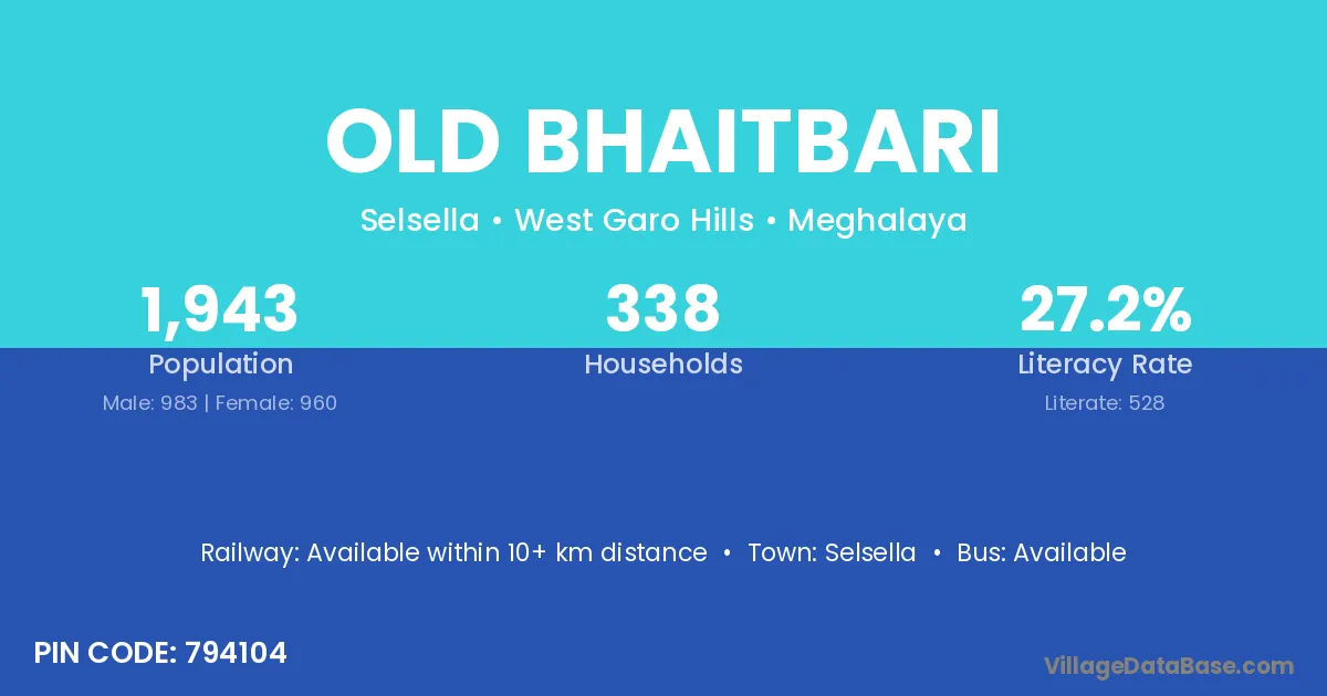 Old Bhaitbari village has a total population of 1,943 people, of which 983 are males and 960 are females.