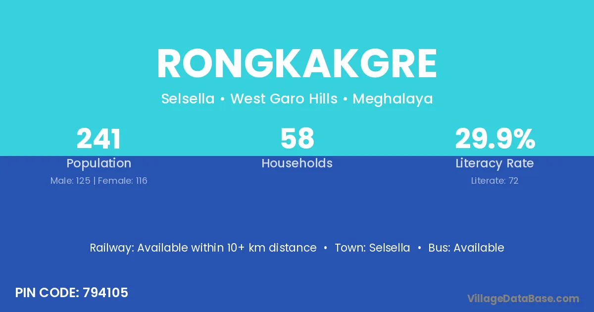 Selsella is the nearest town to Rongkakgre village for major economic activities