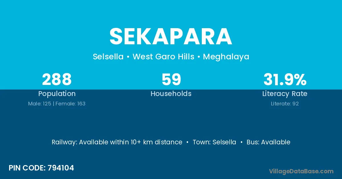 According to Census 2011 information, the village code of Sekapara village is 794104.
