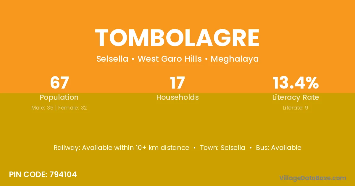 According to Census 2011 information, the village code of Tombolagre village is 794104.