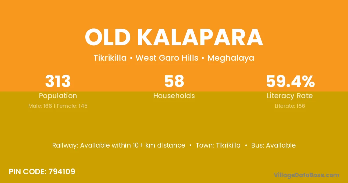 Old Kalapara village has a total population of 313 people, of which 168 are males and 145 are females.