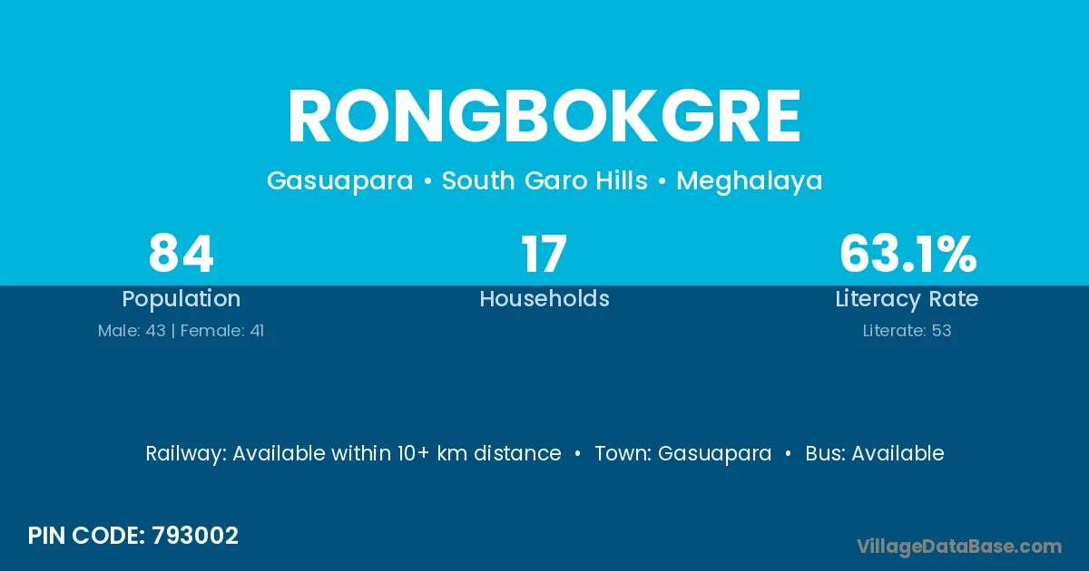 According to Census 2011 information, the village code of Rongbokgre village is 794109.