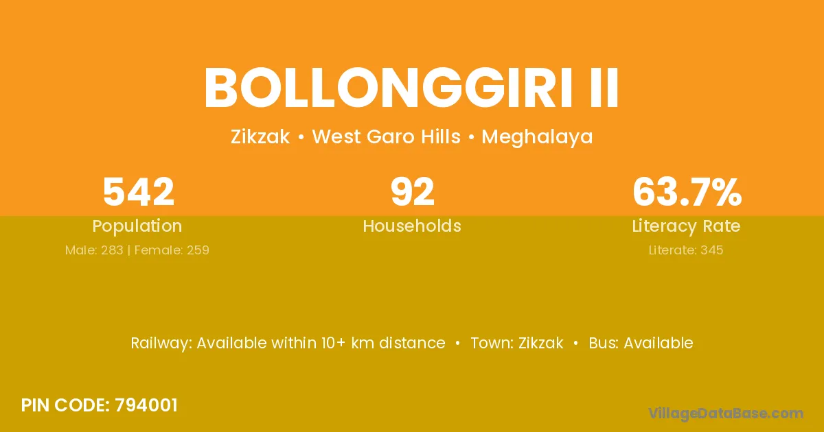 According to Census 2011 information, the village code of Bollonggiri Ii village is 794001.