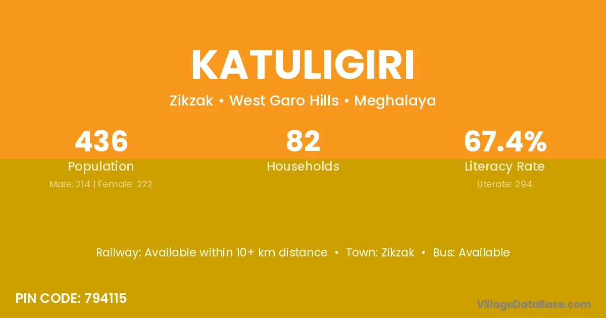 Katuligiri village has a total population of 436 people, of which 214 are males and 222 are females.