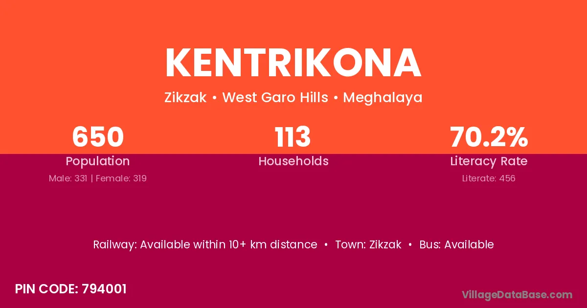 Kentrikona village has a total population of 650 people, of which 331 are males and 319 are females.