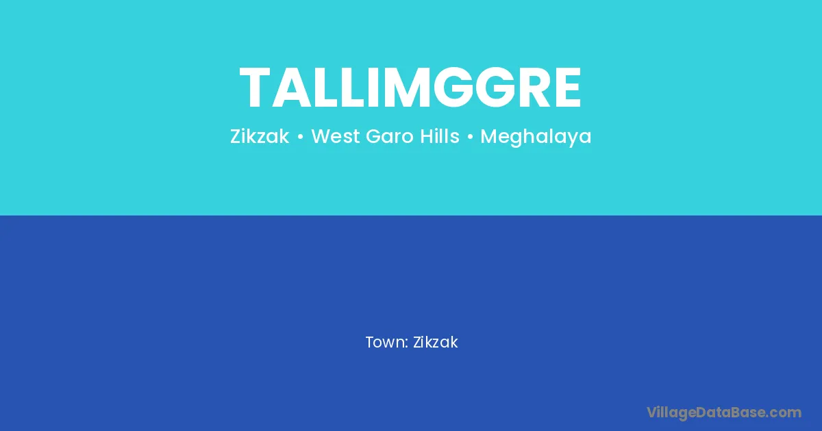 Tallimggre village is located in the Zikzak Subdivision of the West Garo Hills district in Meghalaya .